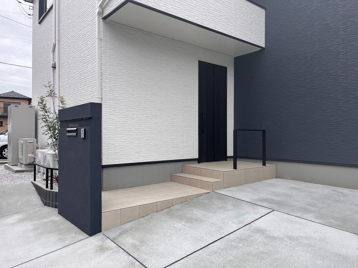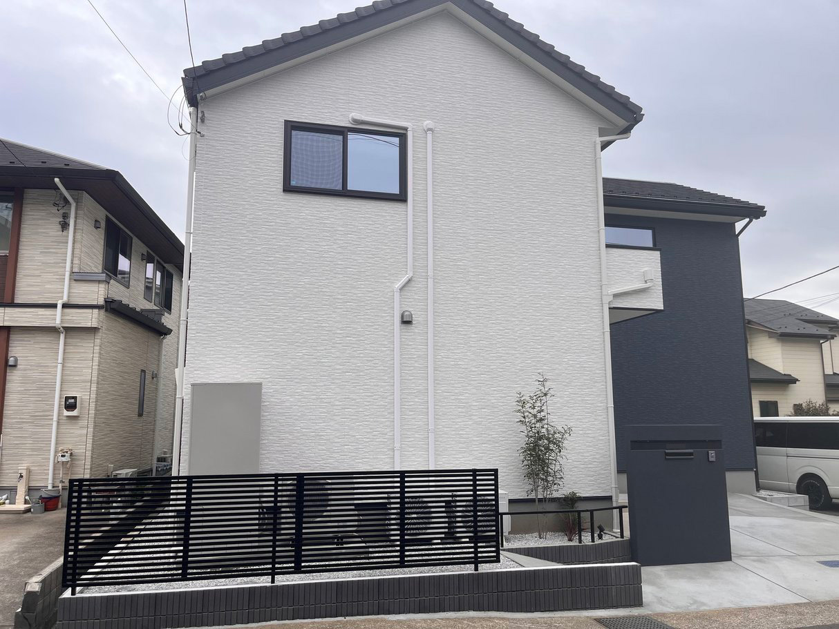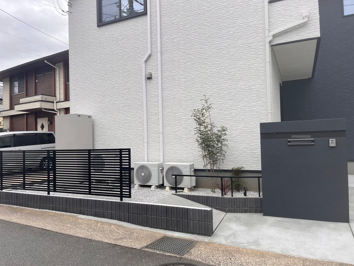 横浜市港南区の新築外構施工事例|ブラックフェンスと門柱が映えるシンプルモダンエクステリア【よこはまがいこう】